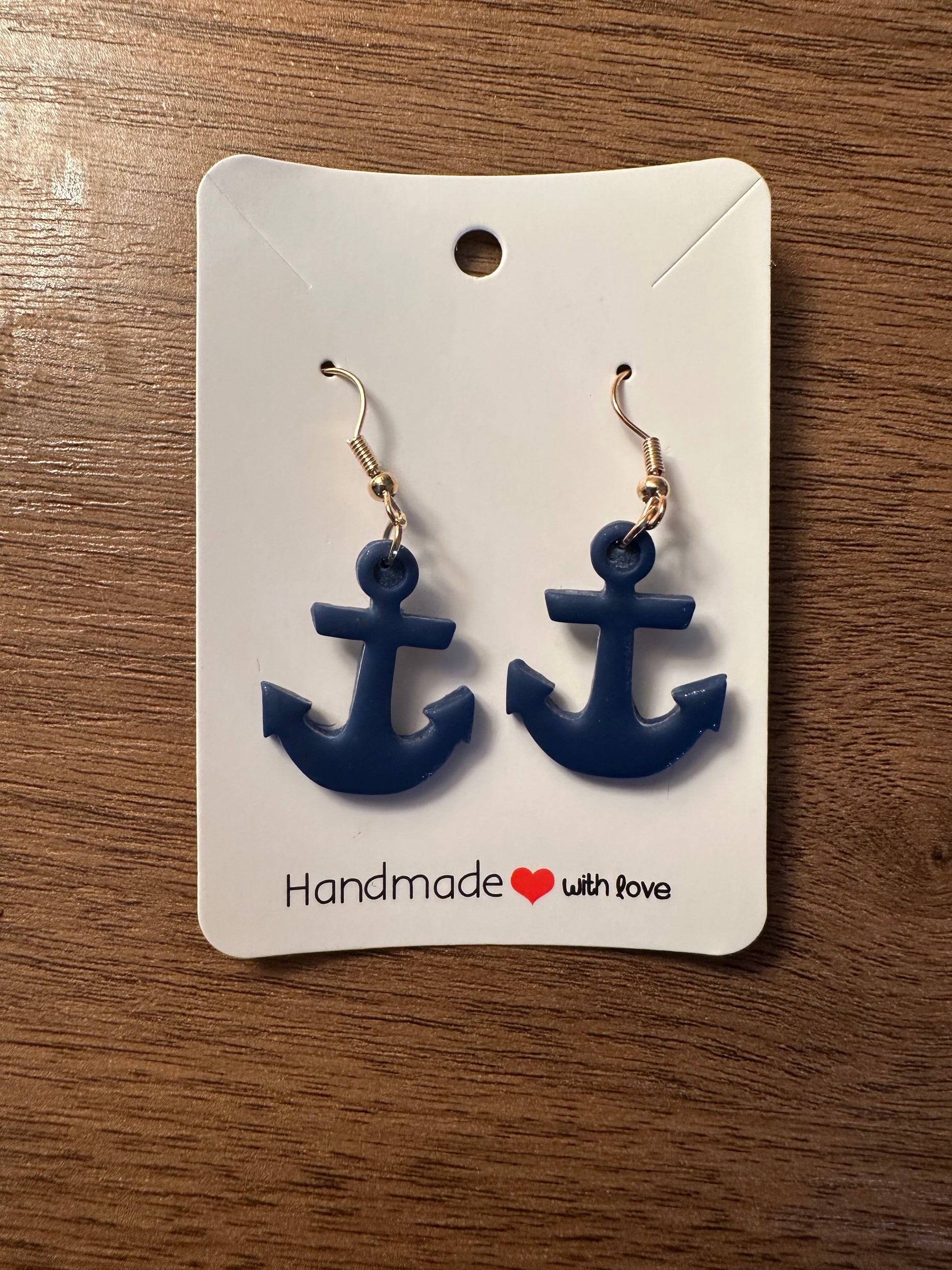 Set sail with these polymer clay anchor earrings! Lightweight and charming, they dangle from simple silver fish hooks, adding a fun nautical touch to any outfit.